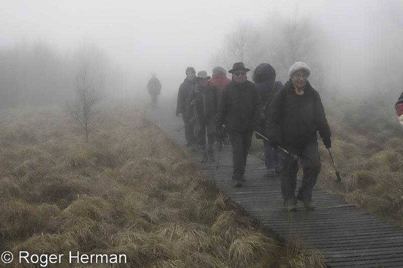 Visibilité à moins de 100 mètres… En ce dimanche 14 décembre, la grisaille était partout, impénétrable, au point même qu’un faucon crécerelle semblait hésiter à s’envoler ! Et malgré tout, une vingtaine de promeneurs étaient heureux de se retrouver dans cette ambiance particulière, sous la conduite de Jean-Marie dont le sens de l’orientation faisait fi du brouillard. Une bien agréable après-midi pour clôturer l’année.
