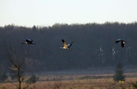Les grues cendrées ont déjà entamé leur migration de printemps ! Depuis quelques jours, de petits groupes d’oiseaux, parfois des couples, ou des familles, mais aussi des troupes plus nombreuses survolent les fagnes et s’y arrêtent de temps en temps. Autrefois, les grues « descendaient » vers le sud dès octobre et « remontaient » en mars-avril. Aujourd’hui, on les voit passer jusqu’en décembre et revenir dès février. Un témoignage de plus de l’influence des changements climatiques !