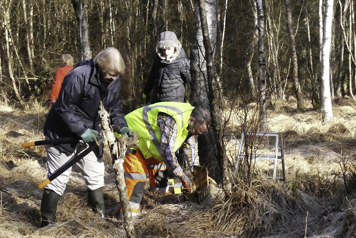 Nettoyage des nichoirs et pose de nouveaux, élimination de semis éoliens d’épicéas, dégagements de genévriers, installation de pièges photographiques… une grande opération de maintenance de la Réserve Naturelle agréée de l’Eau Rouge a eu lieu dimanche 1re mars. Une vaillante équipe de volontaires des « Amis de la Fagne » s’est chargée de ce travail qui a permis, notamment, de constater l’occupation de la majorité des nichoirs à mésanges dispersés dans la réserve. Le tout gratifié d’un temps printanier particulièrement agréable !