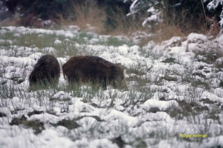 Le Haut Plateau vient de connaître une semaine bien hivernale, avec une dizaine de centimètres de neige. Le redoux s’annonce : n’était-ce qu’une offensive passagère ou l’amorce d’une saison plus rude ? On verra bien! En attendant, ces sangliers se moquent de la poudreuse qu’ils balayent facilement de leurs groins !...